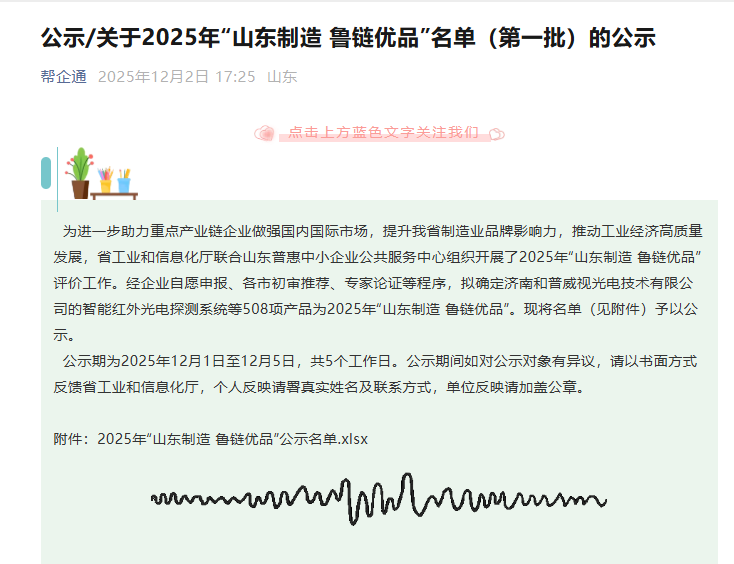 “山东制造 鲁链优品”是山东省为促进制造业高质量发展、培育壮大自主工业品牌而设立的重要项目,旨在选拔一批具备技术领先性、质量可靠性及市场认可度的优质产品,构建特色鲜明、优势突出的山东制造品牌体系。此次认定过程经过多维度严格评审,涵盖产品质量标准、技术创新水平、产业链协同能力及市场表现等核心指标,是对获选企业综合实力的权威认可。